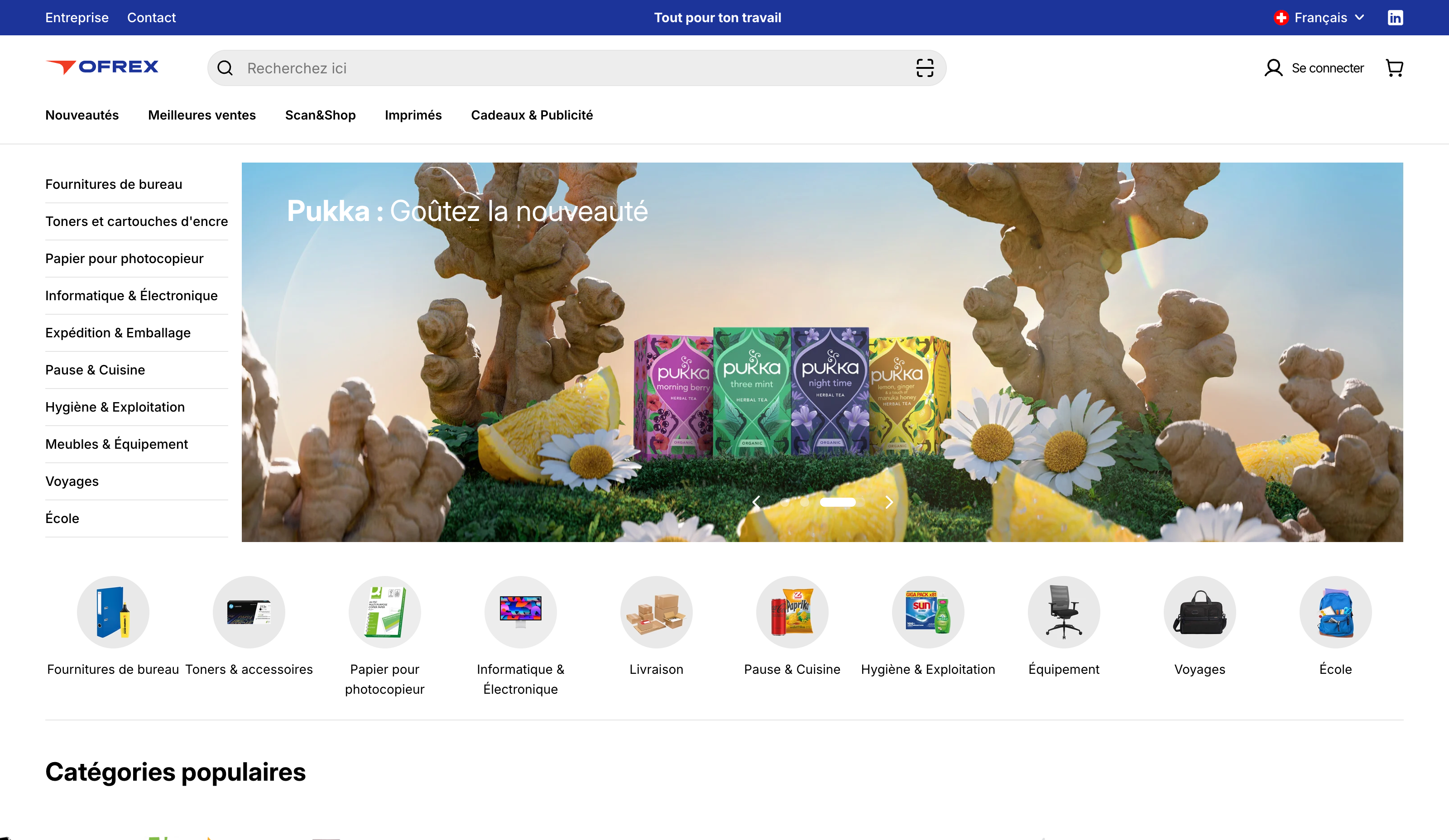 En plus du classeur classique, nous proposons la gamme de toner, une vaste gamme de papiers de bureau, toutes sortes de fournitures de bureau, des produits d'hygiène, les besoins opérationnels et collations pour les pauses, les encas et des boissons. En plus d’avoir l'une des plus larges gammes de fournitures de bureau de la Suisse, nous sommes aussi experts dans le domaine des cartes de visite, des tampons, et des articles de papeterie imprimés avec l’identité de votre entreprise. Nous proposons également le mobilier de bureau par le biais de nos spécialistes de meubles. Volontiers, nous pouvons vous et votre organisation, vous présenter plusieurs avantages pour l'achat de fournitures de bureau. Lorsque vous avez plus de quatre postes administratifs nous pouvons vous conseiller chez vous afin de trouver ensemble une solution simple et rentable.