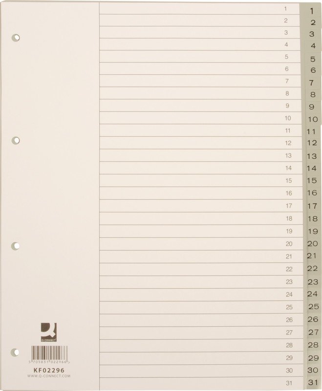 Q-CONNECT Register Vollformat überbreit für Zeigetaschen, aus PP, grau, 120