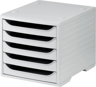 aus schlagfestem PS, mit 5 offenen Schubladen, stapelbar ohne