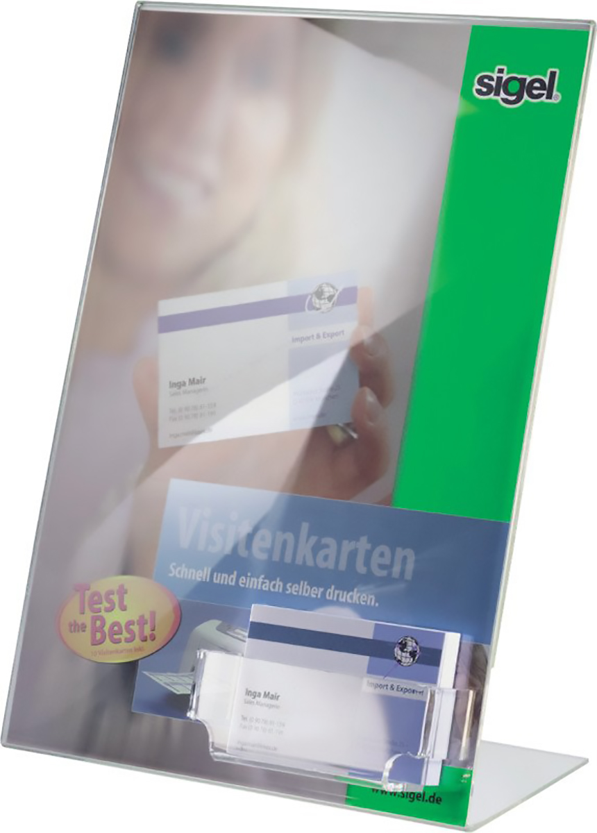 SIGEL Tischaufsteller, einseitig verwendbar, schräg, mit Visitenkartenfach