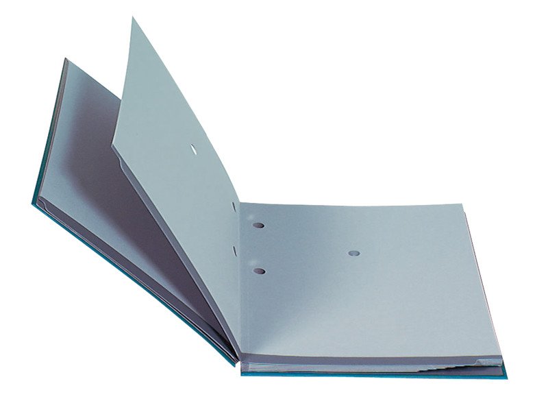reliure recouverte de papier de couleur, couvercle antérieur avec fenêtre et étiquette pour l'inscription du nom, feuillets en carton gris, avec 3 trous de contrôle, avec découpe répertoire renforcée dans le bas, pour format A4. Dimensions: L 240 x P 340 mm.