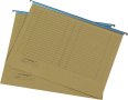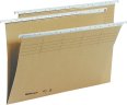 Hängemappen bieten eine gute Möglichkeit ganze Akten geschlossen abzulegen. Sie werden häufig in Arztpraxen gesehen. Aber sie sind auch bestens für die Ablage zuhause geeignet. Die Mappen bestehen aus dickerem Karton und haben oberhalb zwei kleine Metallschienen links und rechts. Durch die Schienen können sie in speziellen Hängemappenwagen eingehängt und versorgt werden. Die Wagen stehen meist auf Rollen und können so überall im Raum platziert werden. Wer weniger Platz beanspruchen möchte, für den eignen sich Hängeregistraturkörbe besser. Dort werden die Mappen auch mit der Zweipunktaufhängung senkrecht hintereinander in Teleskopauszügen eingehängt. Die Körbe und Wagen gibt es in verschiedenen Farben zu kaufen. Die Mappen können auf der Aussenseite oder bei den Schienen beschriftet werden. Dadurch ist das Suchen eines bestimmten Aktes sehr einfach. Um den gewünschten Akt zu öffnen kann die Mappe einfach aufgeklappt werden. Die klassischen Mappen sind in olivgrün. Es gibt die Mappen aber auch in grau, blau, orange, gelb, rot, transparent, grün, beige, und lila. Dadurch kann man bestimmte Akten farblich trennen. Die Mappen sind leicht in der Hand zu halten und zerknittern nicht. Es gibt auch Hängemappen mit Register, wenn man den Akt unterteilen möchte. Da in unserer modernen Zeit auch viele Daten auf Datenträger existieren, gibt es auch spezielle Hängemappen für CDs. Sie können einfach zum gewünschten Akt dazu gehängt werden. Die Mappen werden von den Herstellern Biella, L`Oblique, Leitz, Connect, Durable und GBC angeboten.